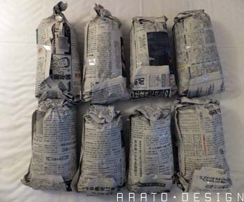 新聞紙にくるみます。(この工程はいらないかもしれませんが、発砲ボックスではなく透明のケースに入れて送る場合は遮光を兼ねてやっておいた方がいいかもです。光が入ると魚の活性が上がり水質を悪化させますからね。)