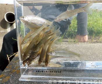 最初のポイント(霞ヶ浦の流入河川)に11:00頃に到着です。堰の少し深くなっているところで沢山の魚影が見えたため探ってみました。釣ってみるとモツゴです。結構流れがあるのですが、どこにでもモツゴはいるものですねぇ。順応性が高いというかなんというか・・・。餌は赤虫です。他にグルテンを持ってきましたが、水が多すぎたのか針残りが悪く、流れのあるところだとすぐに取れてしまいます。よって赤虫一本でやっておりました。